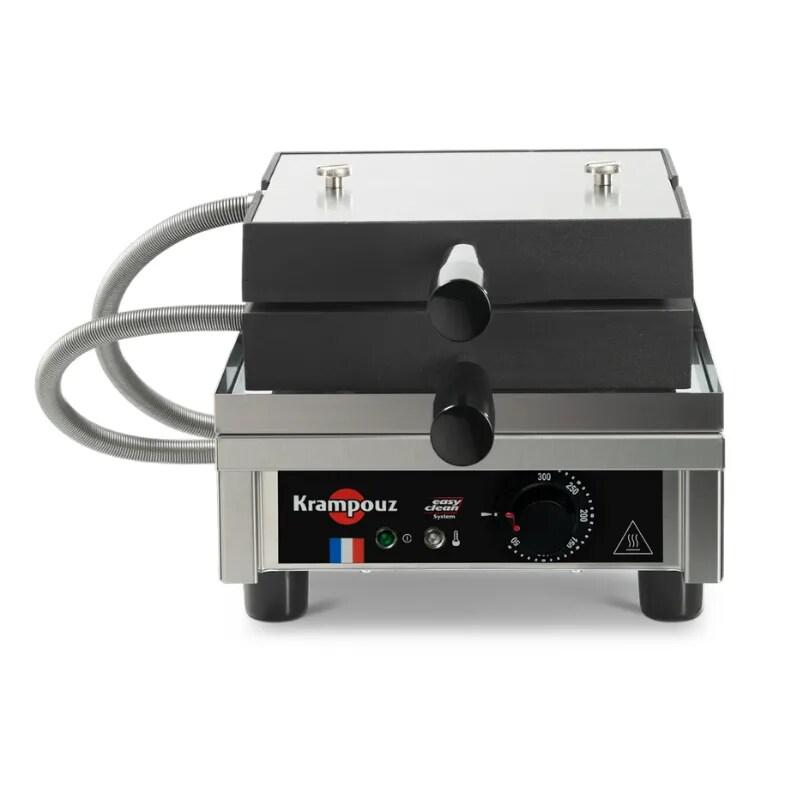 Gaufrier professionnel KRAMPOUZ WECABC - Ce gaufrier est idéal pour la préparation de gaufres fraîches, à réchauffer ou surgelées. Ce modèle compact permet d’accueillir deux gaufres à la fois avec deux fers en fonte ayant pour empreinte 4x6 Bruxelles. - Ce appareil à gaufres au châssis
