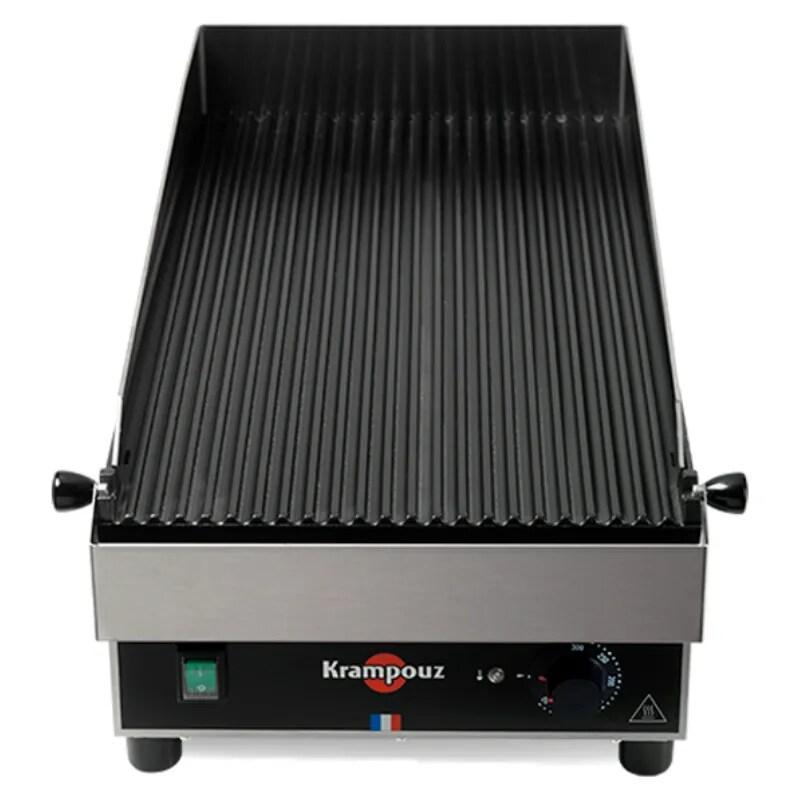 Krampouz Gril électrique profondeur Gril inox avec plaque en fonte émaillée striée, 3 600 W, et une surface de cuisson de 34 x 64 cm. Idéal pour une cuisson précise et rapide dans les petits espaces.