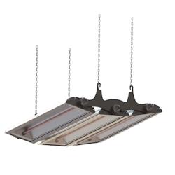 Le modèle IR 3109RR 3P comprend trois lampes IR 3109RR suspendues avec grille frontale, idéales pour le chauffage de grands espaces exigeant protection et fiabilité. Lampe à ondes moyennes ou courtes, montée en suspension, idéale pour les applications industrielles et professionnelles. Le système assure une couverture thermique efficace dans les espaces de moyenne et grande taille. Tension : 230 V - Dimensions du plafonnier (L × l × H) : 906 × 155 × 47 mm - Largeur totale : 490 mm - Entraxe : 164 mm - Hauteur avec crochet : 140 mm.