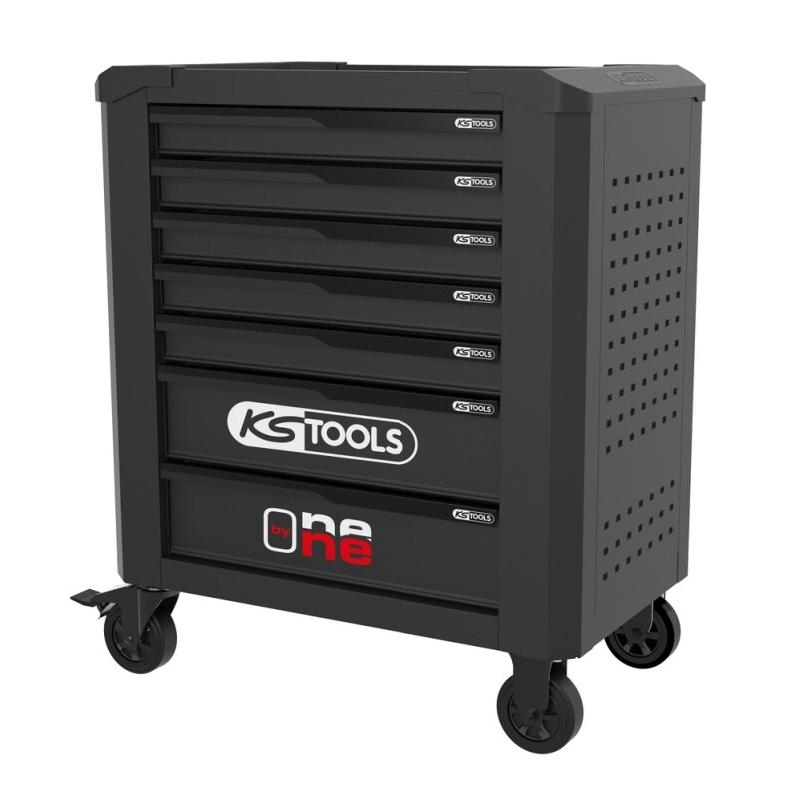 Servante d'atelier One by One 7 tiroirs KS Tools | 823.0007F - Ouverture individuelle et totale des tiroirs - Système anti - basculement - Fermeture automatique des tiroirs - Glissières à roulements à billes - Système de fermeture centralisée par serrure latérale - Plan de travail en ac