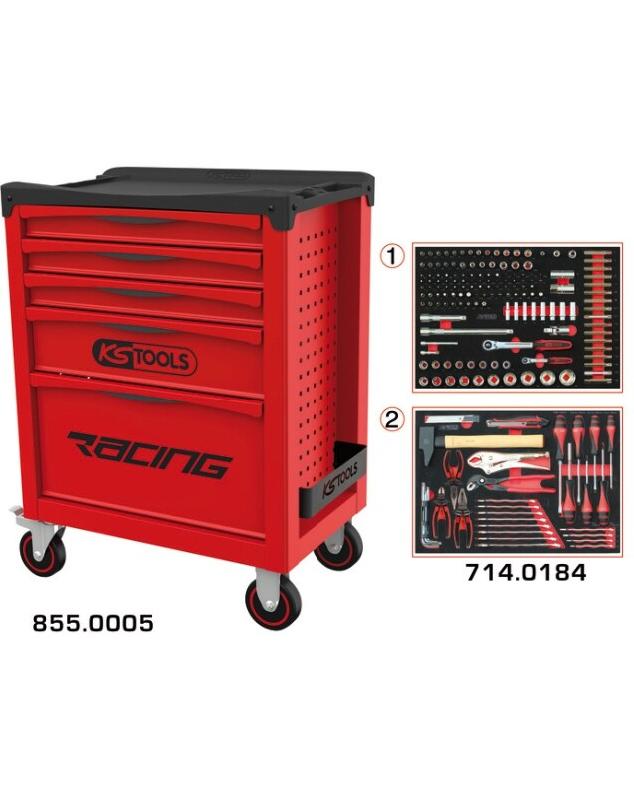 KS TOOLS - 855.5184 - Servante d'atelier complète Racing 5 tiroirs équipée de 184 Outils - Caisse à Outils complète - 4042146825730
