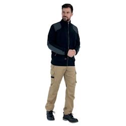 Le pantalon de travail Achille de Lafont, conçu avec des tissus français en sergé (50% Polyester, 50% Coton, 290 g/m2), offre une ceinture haute dos ajustable par boucle, une braguette zippée, 2 poches cuisse, 2 poches revolver, des poches taille à fag, des pinces genoux, un triangle d'aisance,