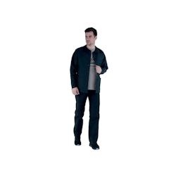 Tissu : 280g, composé de 65% coton et 35% polyester - Caractéristiques : - 2 poches poitrine à soufflets avec rabats : - Sur la poche poitrine droite : 1 poche stylo et 1 petite poche - 2 poches basses plaquées avec ouvertures en biais - Système de fixation intérieur pour recevoir un gile