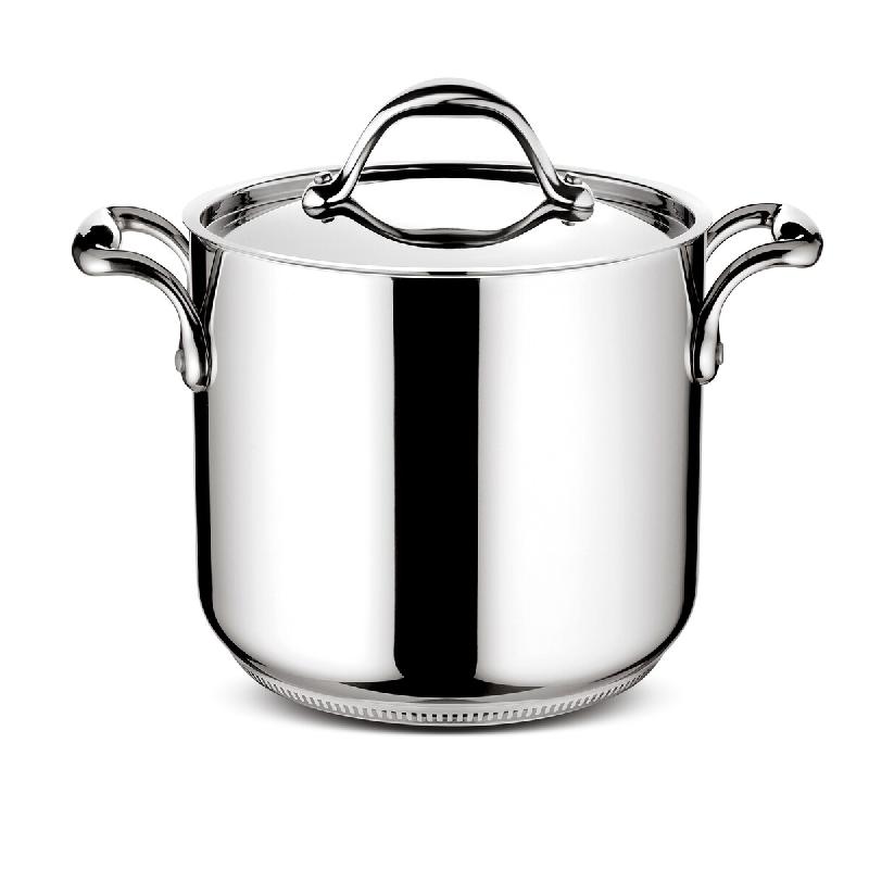 Marmite Accademia Lagofusion Lagostina 11116020526 en acier inoxydable 18/10 avec intérieur satiné moderne et polissage effet miroir raffiné à l'extérieur. Dotée de la Technologie de fond 5-PLY : composée d'une cuve 3-PLY (inox/alu/inox) et d'un épais fond Lagofusion (alu/inox), cette technologie est la plus performante pour des résultats de cuisson homogène et sans points de surchauffe.