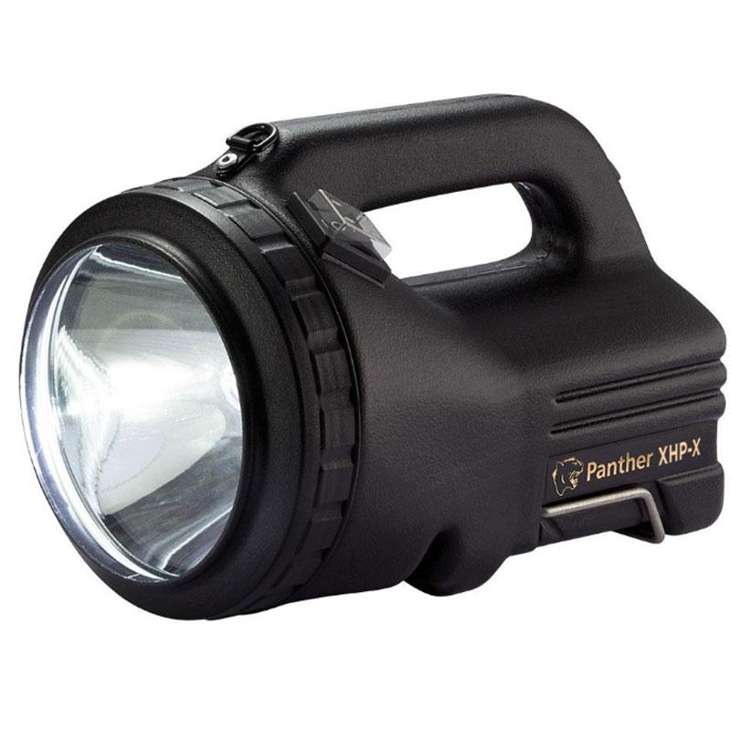 Le Panther XHP-X est une version mise à jour du projecteur Panther XHP, avec 1800 lumens et un faisceau de 1000 mètres. Mis à niveau avec la dernière technologie à LED, le Panther XHP-X a une autonomie de 3 heures en réglage Haut et de 8 heures en réglage Bas. Le réflecteur plat unique en son genre permet un rapport distance / lumière maximal. Avec un poids inférieur à 1 kg, le Panther XHP-X est notre projecteur de recherche Panther le plus léger offrant un rapport qualité-prix exceptionnel. Caractéristiques: Puissance lumineuse de 1800 lumens Faisceau de 1000 mètres Durée d'exécution jusqu'à 8 heures Conception légère - seulement 1 kg Batterie lithium-ion rechargeable - 7.4V 4.4Ah Construction en polyéthylène robuste - pratiquement incassable Réflecteur en profondeur unique Indicateur de charge de la batterie Livré avec chargeur secteur et un support réglable