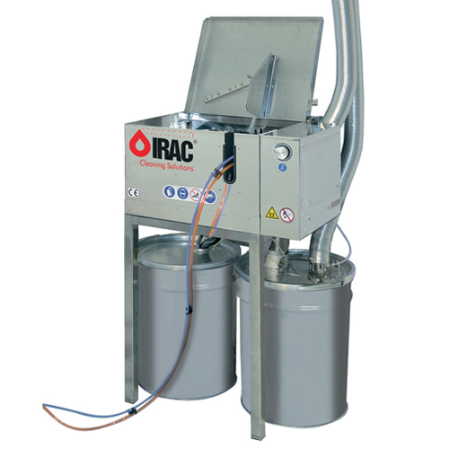 Caractéristiques - NETTOYAGE MANUEL - Poste individuel de nettoyage - Nettoyage avec des solvants écologiques ou inflammables - Fonctionnement Pneumatique - Une brosse autoalimentée et actionnée par la pompe pneumatique - Structure 100% en acier inoxydable - Solvant de nettoyage utilisé
