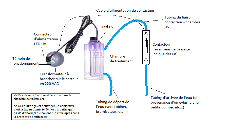 Avec la LED UVc, vous potabilisez bactériologiquement l' eau douce n' importe