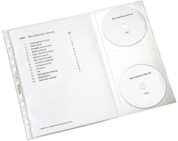 LEITZ Lot de 20 Sachet de 5 pochettes combo A4, avec 2 emplacements CD, en PP 120µ, perforation universelle - 47613003