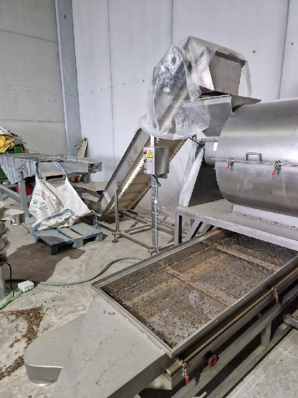 1 unité Table vibrante pour nettoyer les caroubes. 1 unité Tapis élévateur à godets à vitesse variable, avec structure en acier inoxydable. 1 unité Broyeur à marteaux à vitesse variable d'une capacité de 300 kg/h et doté d'une table vibrante (en acier inoxydable) pour séparer deux phases. 1 unité. Panneau de commande du broyeur à marteaux en acier inoxydable. 1 unité Tableau électrique avec toutes les protections et contacteurs pour tous les éléments. (*) Pour compléter la ligne, il manquerait un séparateur d'air (ventilateur) ou un densimètre. Horaires de travail : 20 heures