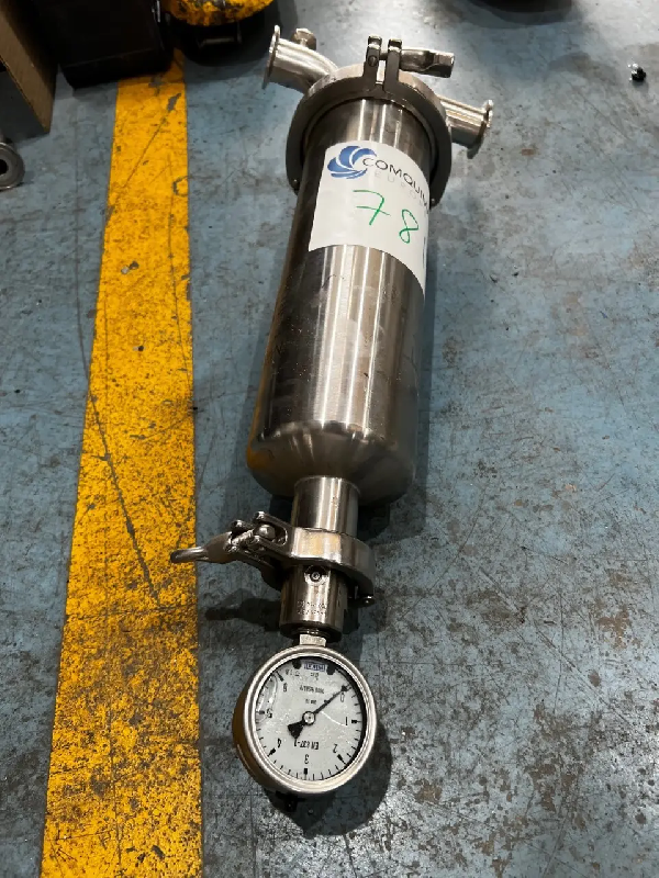 Référence - : - C7831 - Filtre fabriqué par SARTORIUS en acier inoxydable, modèle 7P01QY25TCDFELB, d'une capacité de 3,6 litres. Raccordement DN25. Pince à filtre 4" CORPS Pression d'essai 18,8 bar Pression de service - 1/+10 bar Température de service - 10/+150ºC Volume