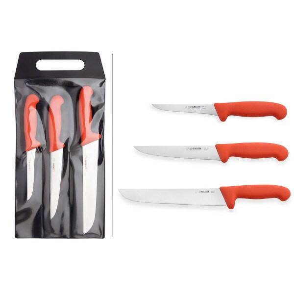 Lot 3 couteaux de boucher en acier chrome-molybdène Giesser rouge - rouge 4010303105902
