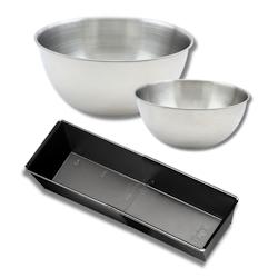 DESCRIPTION: Set à pâtisserie avec moule à pain 31 cm Zenker Pure, 2 bols à mixer inox de 25 et 20,5 cm, verre mesureur 1L, spatule en silicone de 25 cm - PETIT +: Bols, verre doseur et spatule sont de grands classiques, indispensables dans l'équipement de toute cuisine, et vous serviront pour