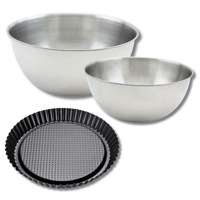 Lot avec 1 moule à tarte renversée 28 cm, 1 spatule Zenker et 2 bols à mixer en inox Fackelmann - noir métal 3176239936384