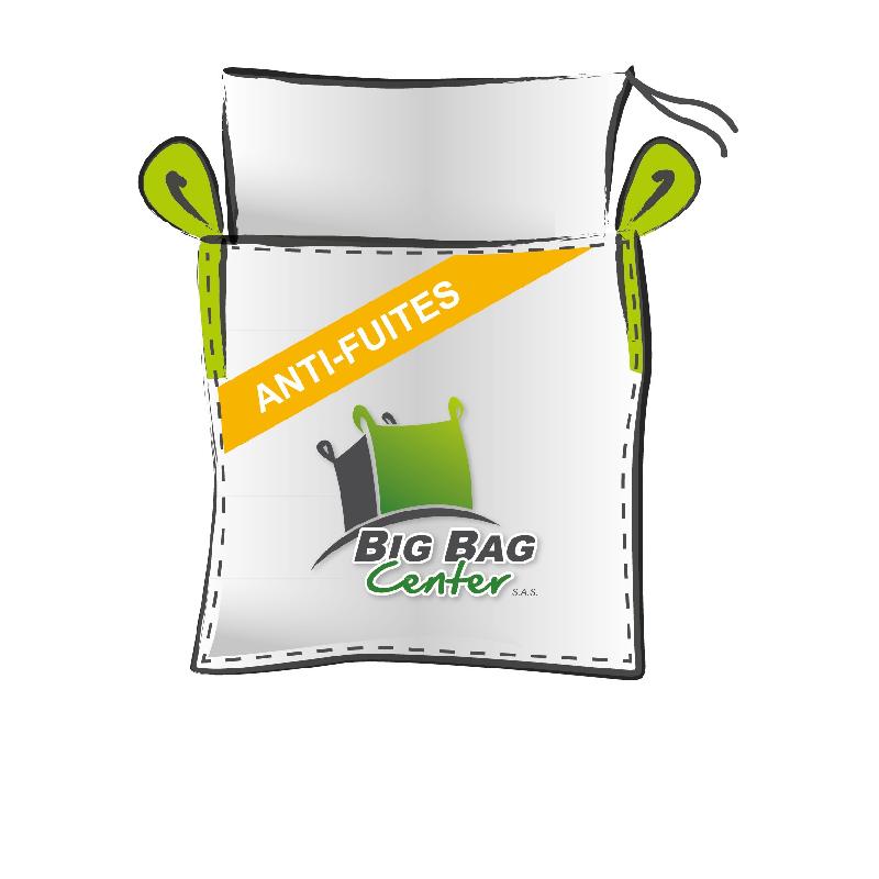 BigBagFond plat1 goulotte sur le dessus de D.500 x 600 mm pour remplissage4 sangles de levage de 25 cm dans les coins avec protèges sangles A usage uniqueCoefficient 5.1Convient au conditionnement de multiples produitsRemplissage par ouverture totale Matière : Polypropylène (PP)Traitement : Anti
