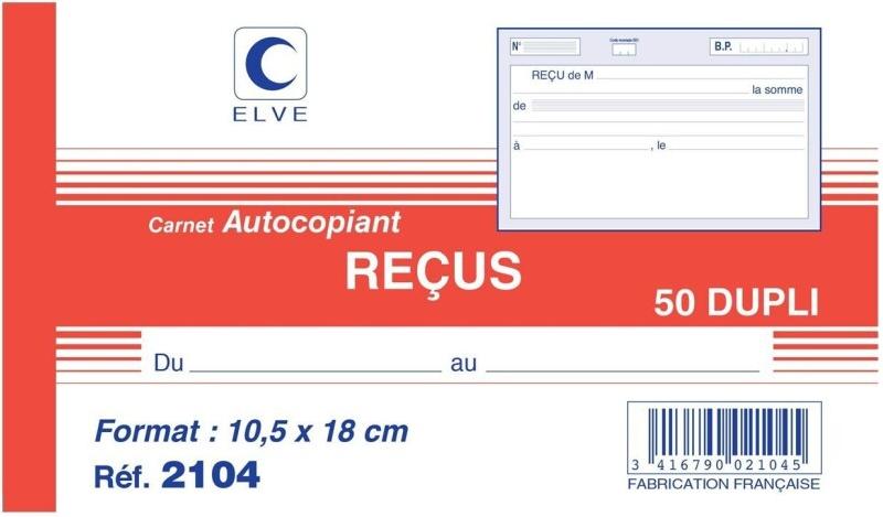 Lot de 10 Carnet Reçus sans TVA - 18x10,5 - 50 dupli - 3416790021045