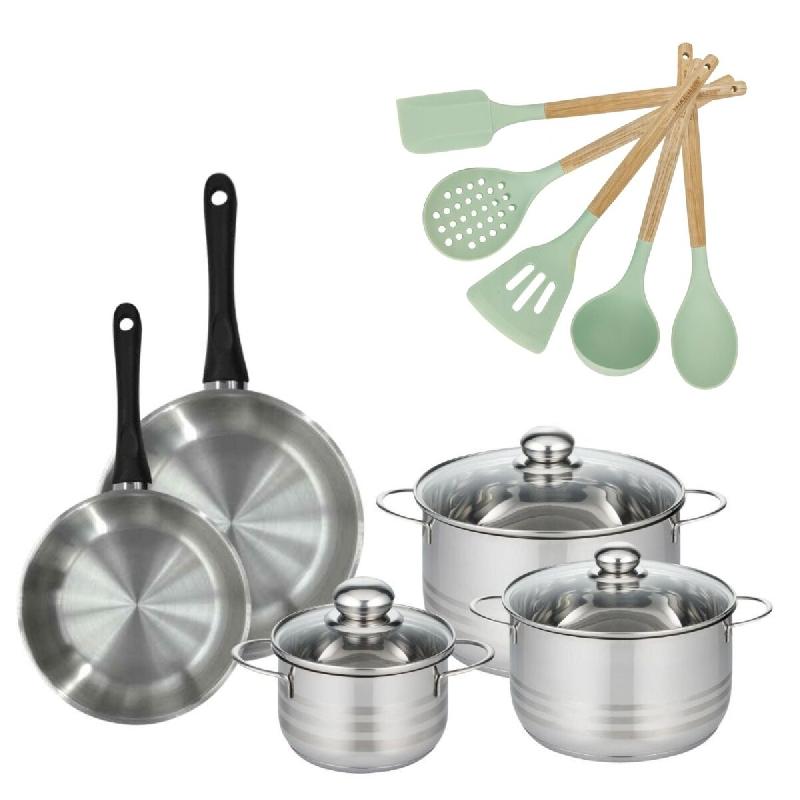 - DESCRIPTION : L'ensemble Fackelmann Généva inclut une poêle et trois faitouts en inox, accompagnés de six ustensiles pratiques pour une cuisine efficace et agréable. - PETIT + : Les faitouts sont dotés de couvercles en verre pour une cuisson à la vapeur maîtrisée. - COMPOSITION : Acier