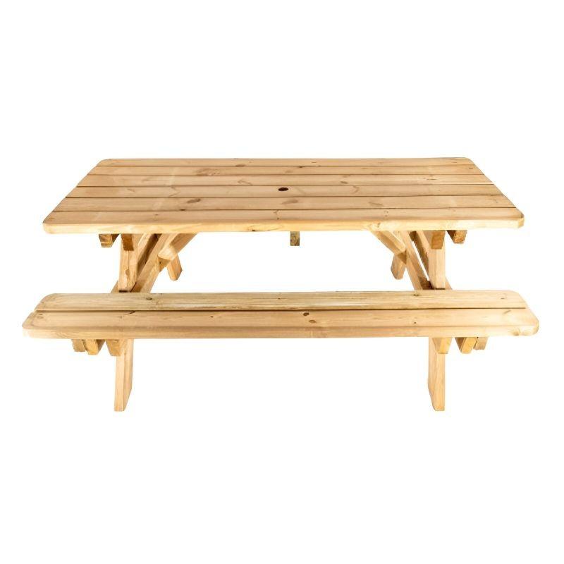 - La table de pique - nique en bois est parfaite pour équiper les espaces extérieurs. Fabriquée en pin du Nord traité autoclave, cette table de pique - nique est conçue pour résister aux intempéries. Elle offre une longévité exceptionnelle. Ses angles arrondis garantissent la sécurité et