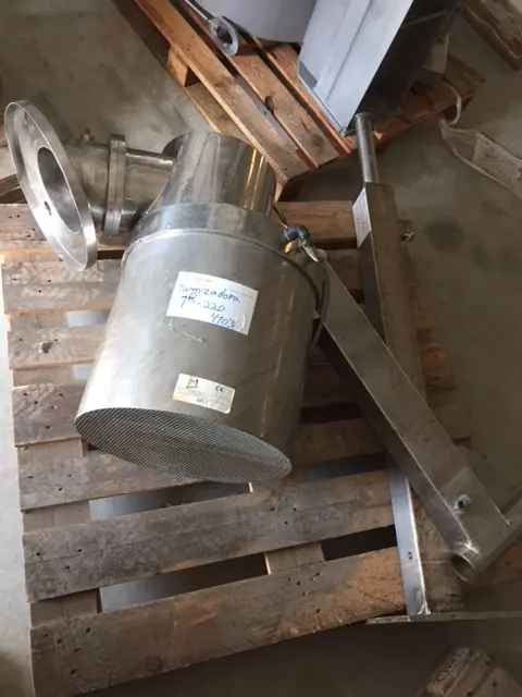 Tamis centrifuge modèle TR160/2 fabriqué par GLATT LABORTECNIC. Pièces en contact avec le produit en acier inoxydable. - Caractéristiques techniques : - Diamètre de la trémie d'alimentation : 300 mm - Diamètre de déchargement : 140 mm - Dimensions de transport : - Base : 1000x800 mm -