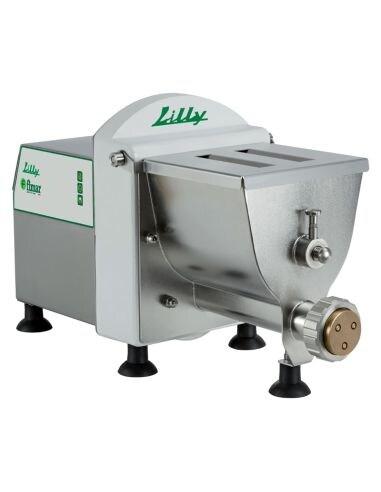 Caractéristiques principales : - Réalisation de la cuve en acier inoxydable. - Châssis peint au four. - Capacité de cuve : 2 kg de farine pour pétrissage. - Production automatique : 6 kg/h de pâtes de blé dur. - Couteau automatique : coupe des pâtes courtes ou longues. - Dispositif var