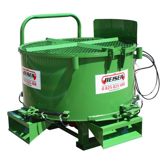 Malaxeur à béton 800 litres - Volume total 1200 litres - Moteur hydro de série - Hauteur 1250mm - Diamètre interieur 1500mm - Hauteur de cuve 730mm - 4 bras / 1 sortie arrière - Fond de ...