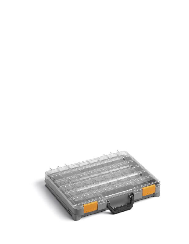 La Mobil - Box est une mallette de rangement très pratique et au design attrayant, avec compartiments ingénieux et modulables. Équipée dÂ'angles caoutchoutés et dÂ'une poignée, cÂ'est une mallette pratique, très robuste et facile à porter. La Mobil - Box résiste à la plupart des huiles,