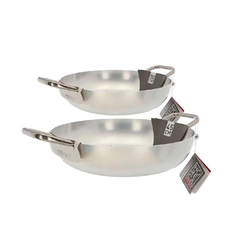 Mamù Lot de 2 poêles professionnelles, en aluminium pur, Ø 38/45 cm, pour gaz, électrique ou vitrocéramique. - aluminium SETHORHOTGA2MBM3845