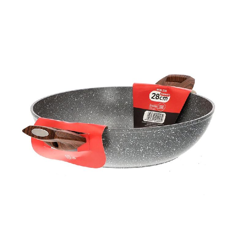 Mamù Wok à induction épais et ultra-résistant avec deux poignées 28 cm FASINWOK2MXXXX28 - argenté aluminium FASINWOK2MXXXX28