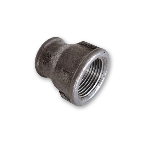 Le manchon réduit est un raccord en fonte détenant deux côtés femelles taraudés et alignés d'un diamètre différent. D'un côté nous avons un diamètre de 26,9mm (3/4") et de l'autre un diamètre de 33,7mm (1"). Les pièces s'assemblent facilement sans avoir besoin de souder, il suffit de les visser entre-elles afin d'obtenir une structure solide.