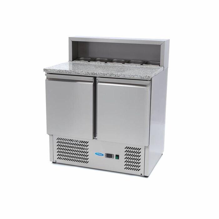 Maxima - 9400200 Comptoir à pizza réfrigéré 90cm 2 portes adapté à 5x1/6 GN avec couvercle en acier inoxydable plan en granit 285L 90x70x110 cm