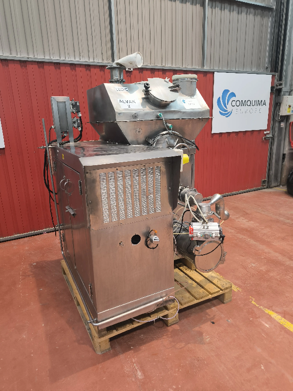 Référence - : - C13985 - Mélangeur en ligne de la marque VAK KIMSA, modèle ALVAK 4 avec trémie DOSIVAK. - Puissance du moteur principal : 22 kW - Puissance du moteur de la trémie : 3 kW - Brides d'alimentation et de sortie : DN80Caractéristiques techniquesModèleALVAK 4 Informations pou