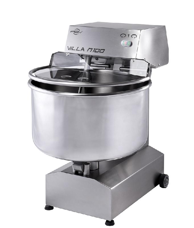 Mélangeur à viande professionnel PSV. - Carrosserie entièrement en acier inoxydable. - L'axe oblique : conçu spécialement pour mélanger efficacement. - Un bras relevable à deux branches. - Cuve motorisée et basculante pour un nettoyage facile. - Equipé de deux moteurs. - Frein manuel