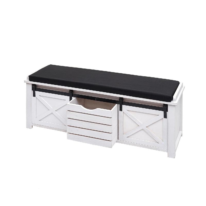 - Le banc au design vintage n'est pas seulement agréable à l'œil, il dispose également d'un grand espace de rangement facilement accessible grâce aux portes coulissantes raffinées. De plus, le banc possède une boîte en bois pour un rangement optimal.