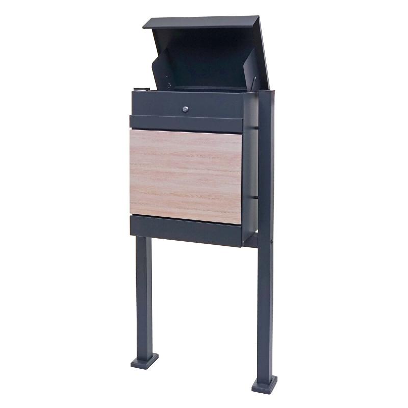 Mendler Boîte à paquets avec pied HWC-K41, boîte à paquets Poste à lettres sur pied, métal ~ galvanisé anthracite aspect bois - gris métal 92121+92125