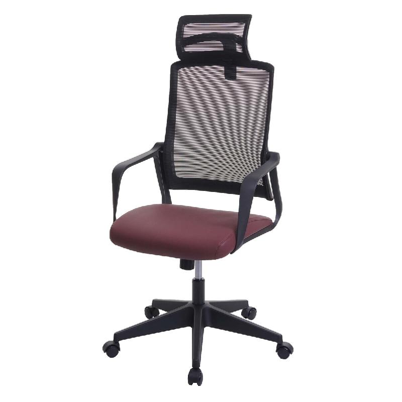 Mendler Chaise de bureau HWC-J52, chaise pivotante chaise de bureau, appui-tête ergonomique, similicuir ~ bordeaux-rouge - rouge matière synthétiqu