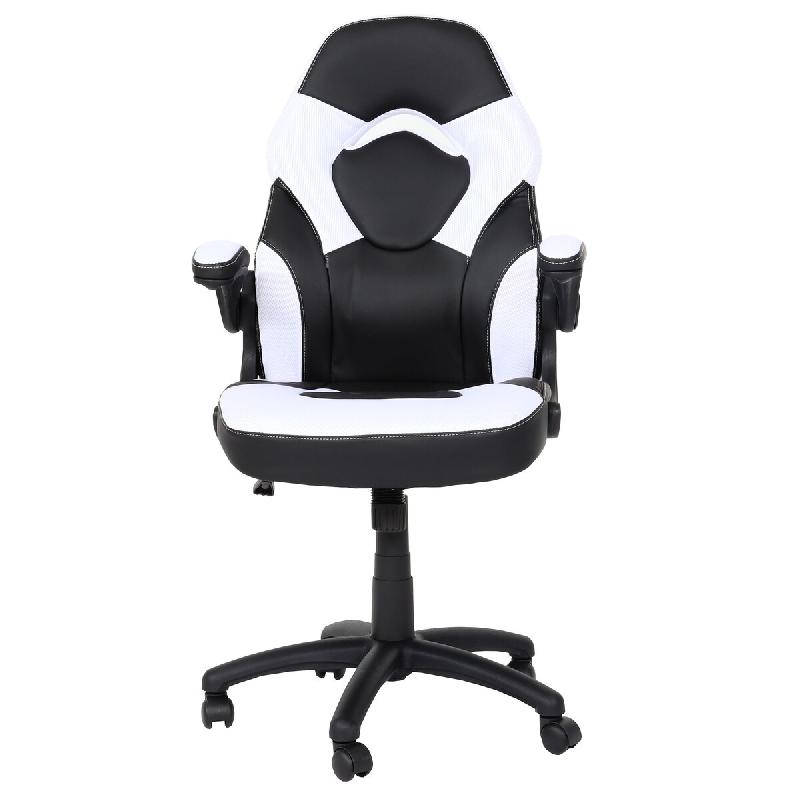 Mendler Chaise de bureau HWC-K13, chaise pivotante Gaming, ergonomique, accoudoirs réglables, similicuir ~ noir-blanc - blanc matière synthétique 8