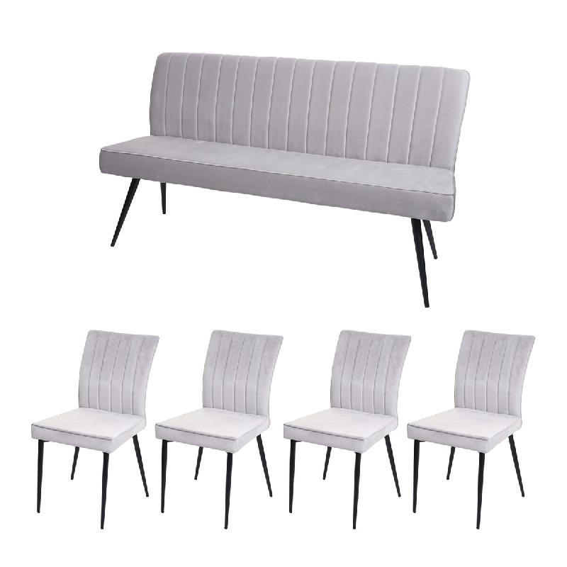 Mendler Ensemble de salle à manger HWC-K16, lot de 4 chaises+banquette Groupe de salle à manger Ensemble de salle à manger, velours métal ~ gris c