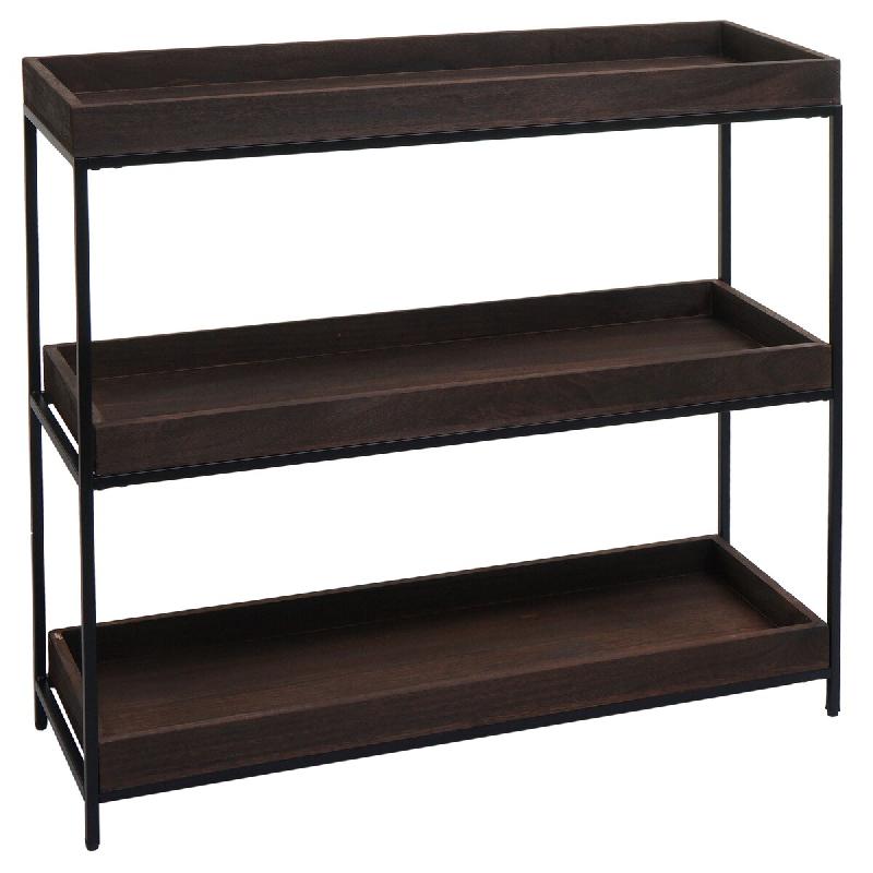 Mendler Étagère HWC-K71, Étagère sur pied Étagère à plantes Étagère à livres, bois métal 3 tablettes 90x100x35cm ~ brun foncé - marron Boi
