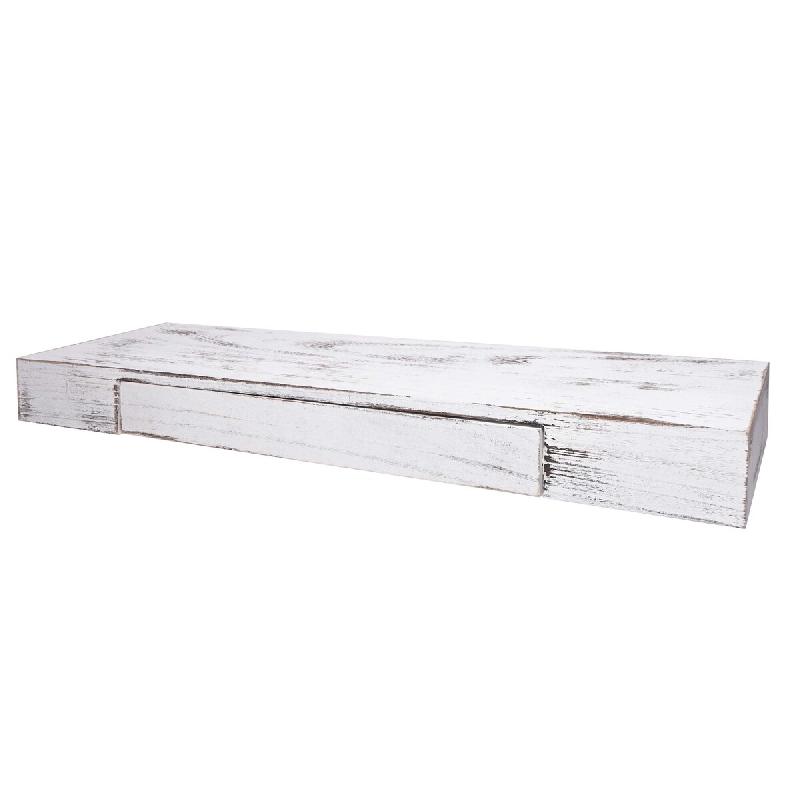 Mendler Etagère murale HWC-H37, Etagère suspendue Etagère murale, tiroir en bois massif 8x80x25cm ~ blanc, shabby - blanc Bois massif 72924