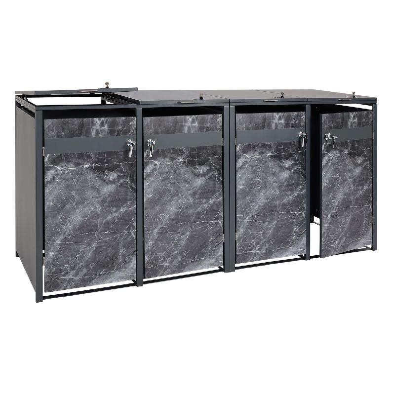 Mendler Habillage pour 4 poubelles HWC-J82, Box pour poubelles, extensible, métal 100kg, anthracite ~ aspect marbre foncé - noir métal 2x83394+2x83395