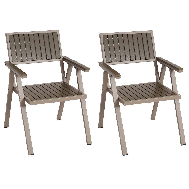 Mendler Lot de 2 chaises de jardin HWC-J95, chaise de balcon chaise, revêtement extérieur, aluminium aspect bois ~ châssis champagne, gris - gris m
