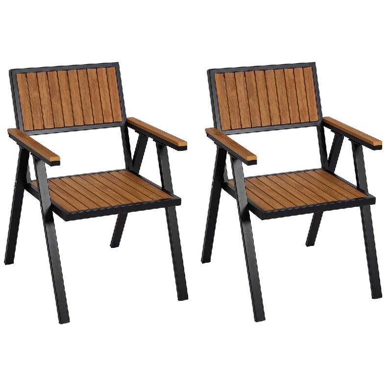 Mendler Lot de 2 chaises de jardin HWC-J95, chaise de balcon chaise, revêtement extérieur, aluminium aspect bois ~ structure noire, teck - marron mÃ