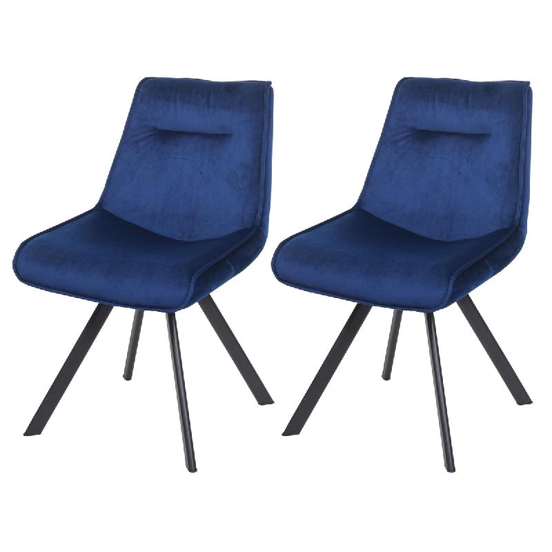 Mendler Lot de 2 chaises de salle à manger HWC-K24, chaise rembourrée, chaise de cuisine, métal velours ~ bleu - bleu textile 89597