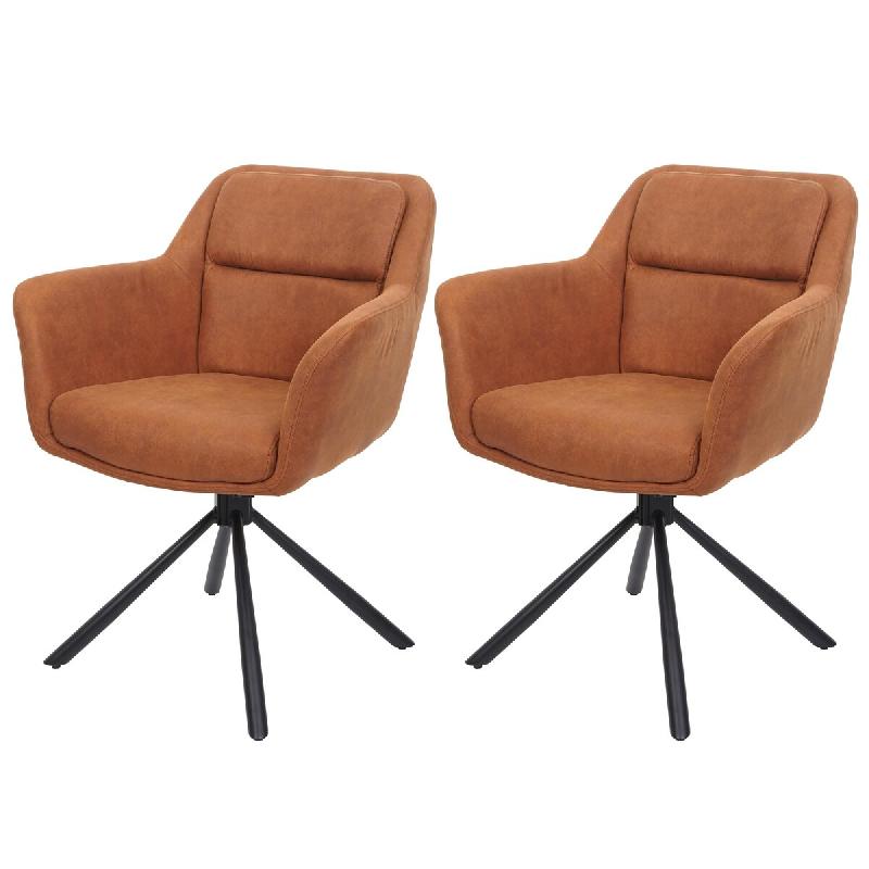 Mendler Lot de 2 chaises de salle à manger HWC-K33, chaise de cuisine, pivotante Auto-Position, tissu MVG ~ aspect daim brun - marron textile 89662