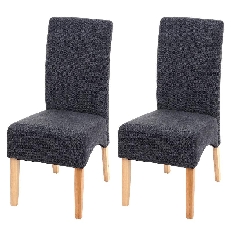 Mendler Lot de 2 chaises de salle à manger Latina, chaise de cuisine, tissu/textile certifié MVG ~ gris foncé, pieds clairs - gris textile 74640