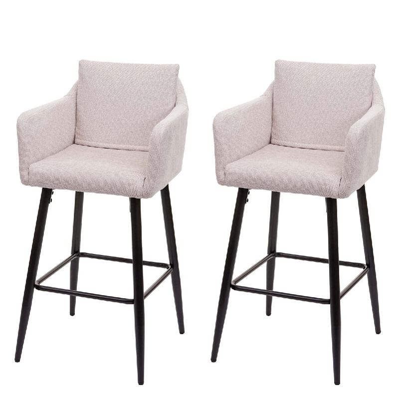 Mendler Lot de 2 tabourets de bar HWC-H93, chaise de bar tabouret de bar, repose-pieds en métal ~ tissu/textile beige crème - beige textile 74759