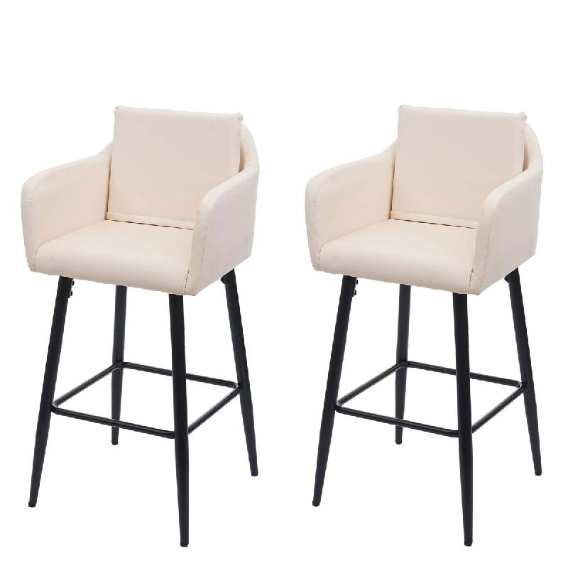 Mendler Lot de 2 tabourets de bar HWC-H93, chaise de bar tabouret de comptoir, repose-pieds en métal ~ simili cuir beige crème - beige matière synt