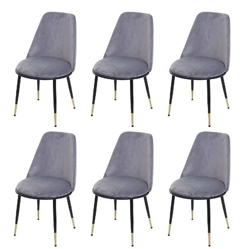 Mendler Lot de 6 chaises de salle à manger HWC-H28, chaise de cuisine, métal ~ gris, pieds noirs, velours - gris textile 3x72825