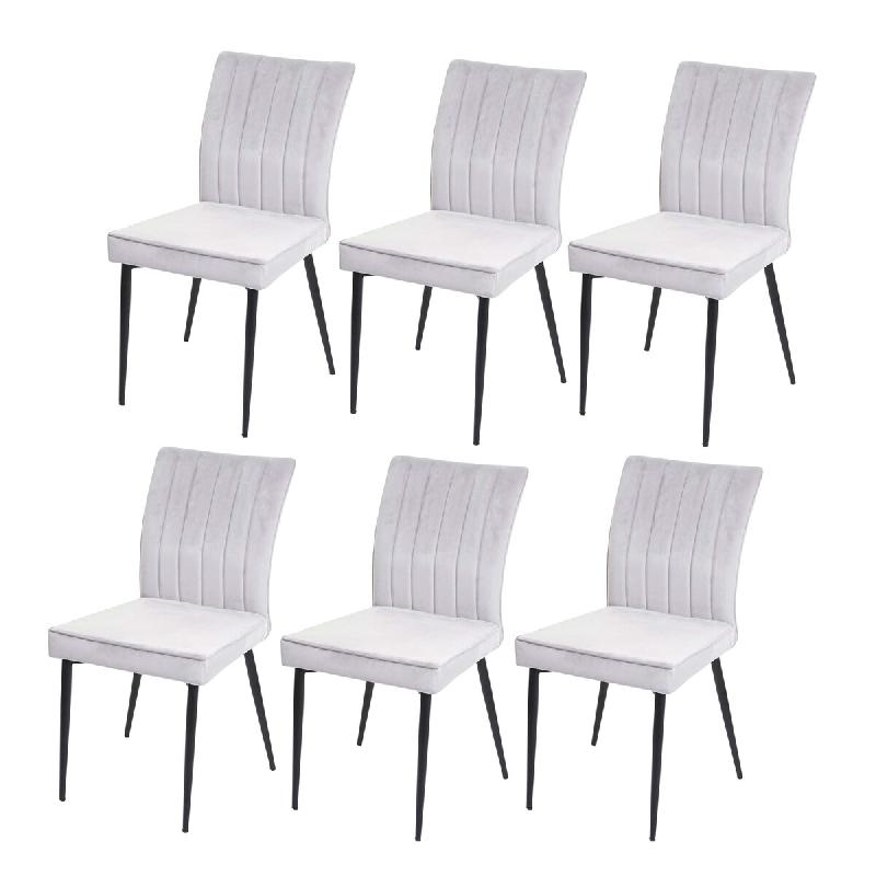 Mendler Lot de 6 chaises de salle à manger HWC-K16, chaise de cuisine, velours métal ~ gris clair - gris textile 3x89320