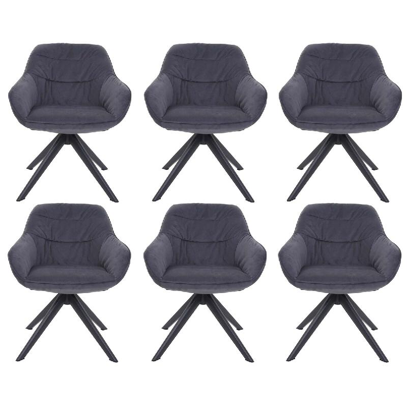 Mendler Lot de 6 chaises de salle à manger HWC-K28, chaise de cuisine chaise rembourrée avec accoudoirs, pivotante, métal ~ tissu/textile gris - gr