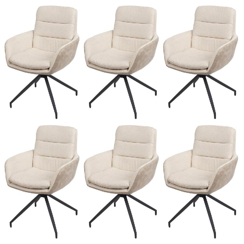Mendler Lot de 6 chaises de salle à manger HWC-K32, chaise de cuisine chaise pivotante position auto, tissu MVG ~ crème-beige - beige textile 6x89656